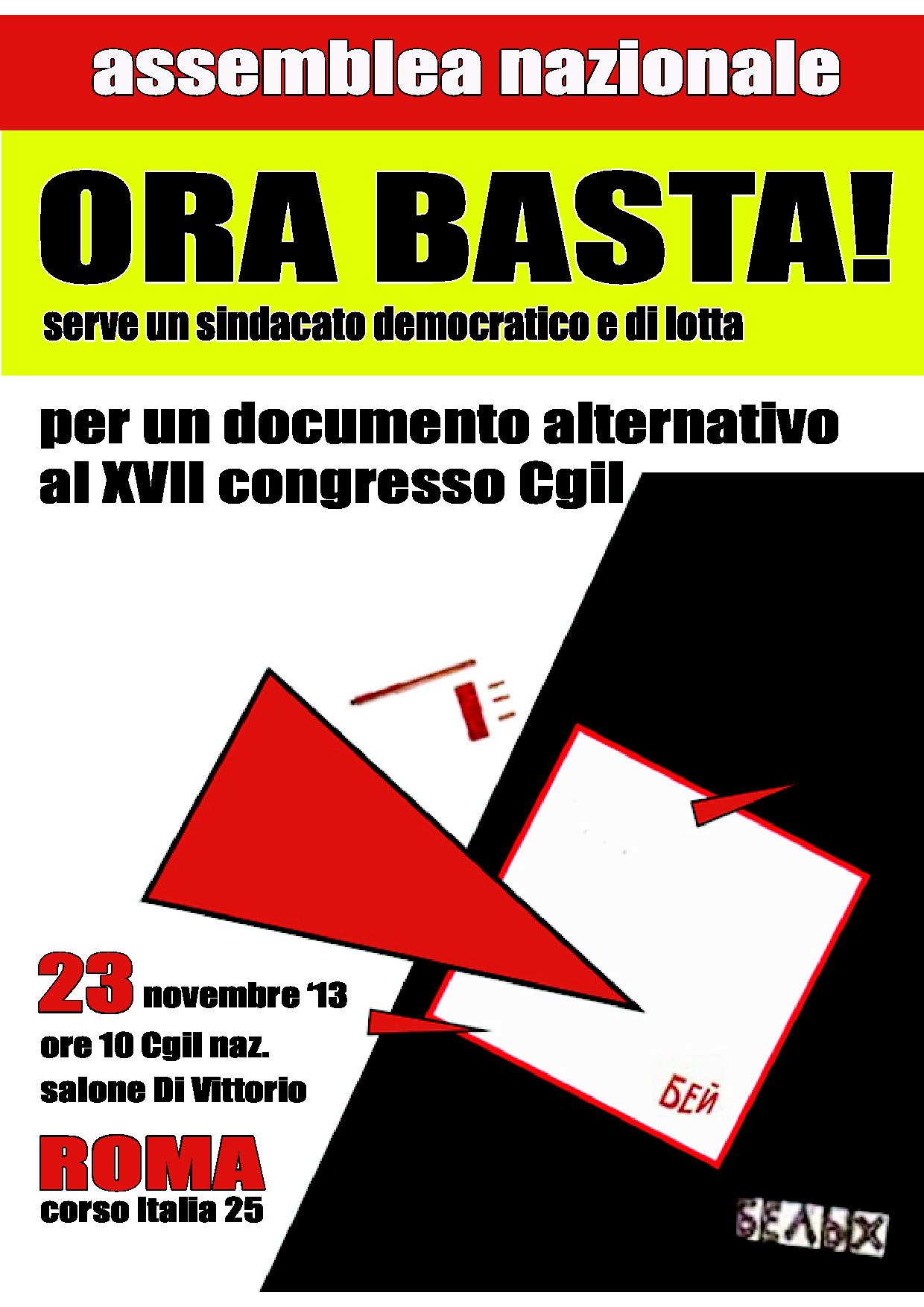 Assemblea 23 novembre: ORA BASTA! Pubblicati su 19 novembre 2013 da Andrea Martini in appuntamenti // 0 Commenti Locandina dell’assemblea nazionale del 23 novembre, Cgil nazionale ore 10, sala Di Vittorio. Presentazione del documento alternativo per il XVII congresso della Cgil. Condividi: Condividi su X (Si apre in una nuova finestra) X Condividi su Facebook (Si apre in una nuova finestra) Facebook Stampa (Si apre in una nuova finestra) Stampa Invia un link a un amico via e-mail (Si apre in una nuova finestra) E-mail Condividi su WhatsApp (Si apre in una nuova finestra) WhatsApp Condividi su Telegram (Si apre in una nuova finestra) Telegram Mi piace Caricamento... Correlati
