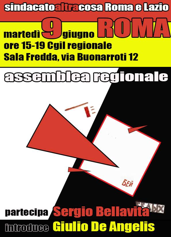 Martedì 9 giugno, ore 15.00, assemblea regionale sindacatoaltracosa Roma e Lazio, via Buonarroti 12, sala Fredda. Partecipa Sergio Bellavita. Introduce Giulio De Angelis. Scarica la locandina
