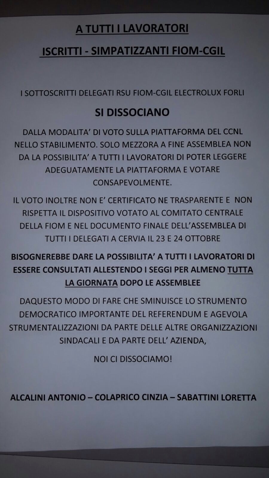 Pubblichiamo il comunicato con cui delegate e delegati Fiom della Electrolux di Forlì criticano le modalità di votazione per la piattaforma Fiom. Leggi