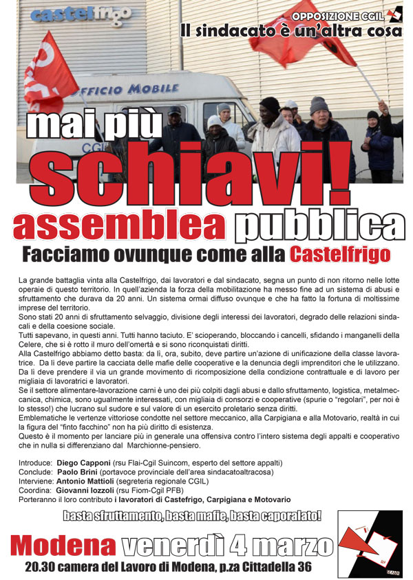 Venerdì 4 marzo, camera del Lavoro di Modena, piazza Cittadella 36. Ore 20.30. Assemblea pubblica. Vedi la locandina in versione pdf