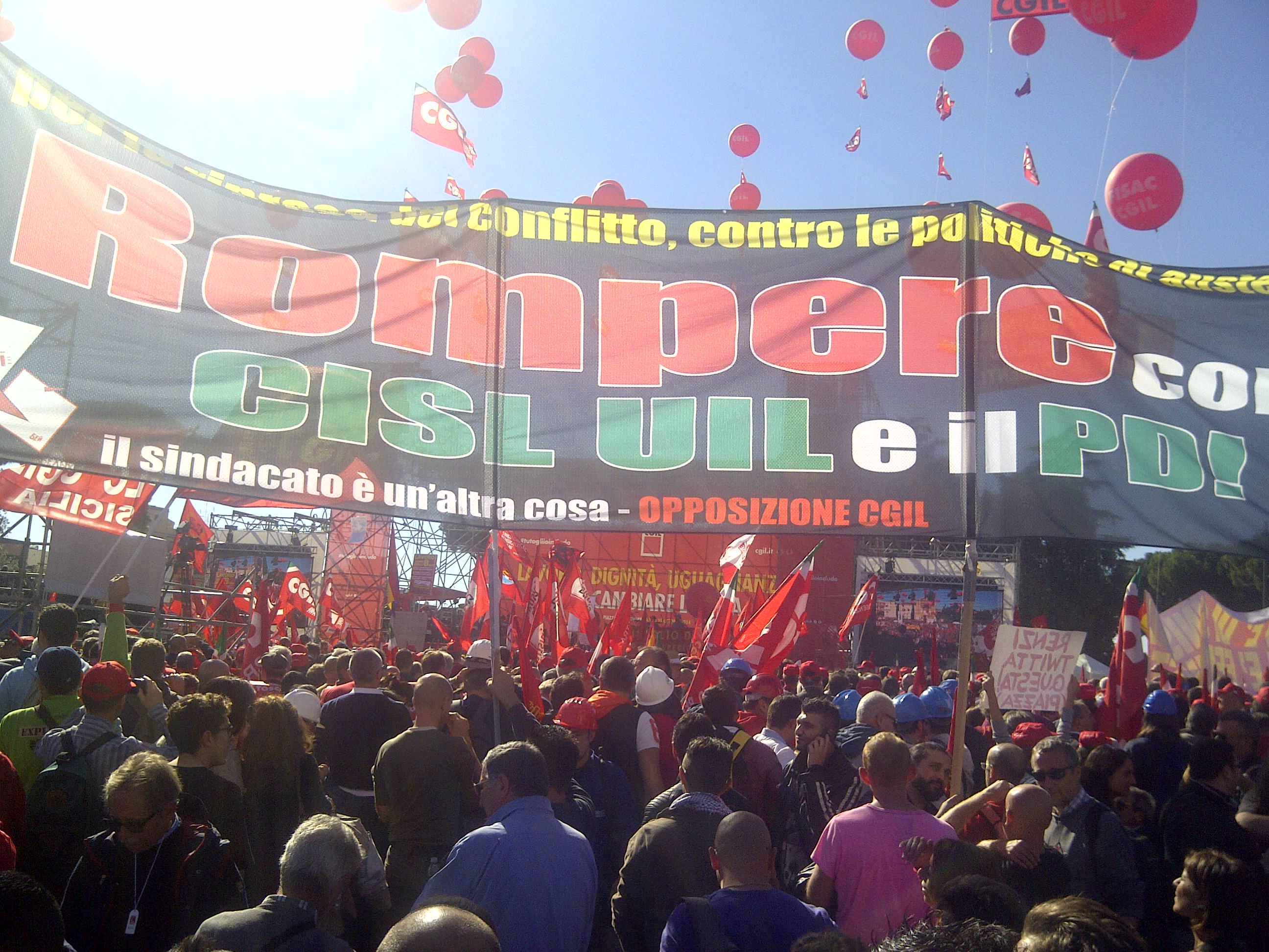 In questa ottica, il bilancio politico tracciato dagli anni ’90 fino ad oggi è inesorabile: non solo siamo assolutamente lontani dall’obbiettivo minimo di aver impresso un cambiamento significativo dentro la CGIL, ma, cosa ancor più grave, non siamo neanche riusciti a condizionare il gruppo dirigente dell’organizzazione per spingerlo ad organizzare un movimento di lotte difensivo contro le politiche di austerità. Al contrario, con l’avvento di Susanna Camusso a segretaria generale dell’organizzazione, la Cgil ha impresso una stretta antidemocratica alla vita interna dell’organizzazione che non ha precedenti e dobbiamo prendere coscienza che non siamo riusciti neanche a porre un minimo di argine alla deriva verso destra imboccata dal gruppo dirigente di maggioranza della CGIL. Facciamo fatica, fatta eccezione per la stagione dei bulloni a Trentin, a ricordare la direzione di qualche lotta sindacale di rilievo che è stata condotta da dirigenti della sinistra sindacale, i quali invece sono sempre apparsi avviluppati in battaglie burocratiche interne e autoreferenziali. L’area “Il sindacato è un’altra cosa” aveva imboccato una strada diversa in quanto era riuscita a riunire compagne e compagni provenienti da diverse posizioni ed aveva presentato, per la prima volta dal 2001, un documento alternativo basato su proposte e supportato da compagne e compagni storicamente di sinistra nelle posizioni e nelle pratiche. Anche in questo caso l’esperienza non ha avuto gli esiti sperati.
