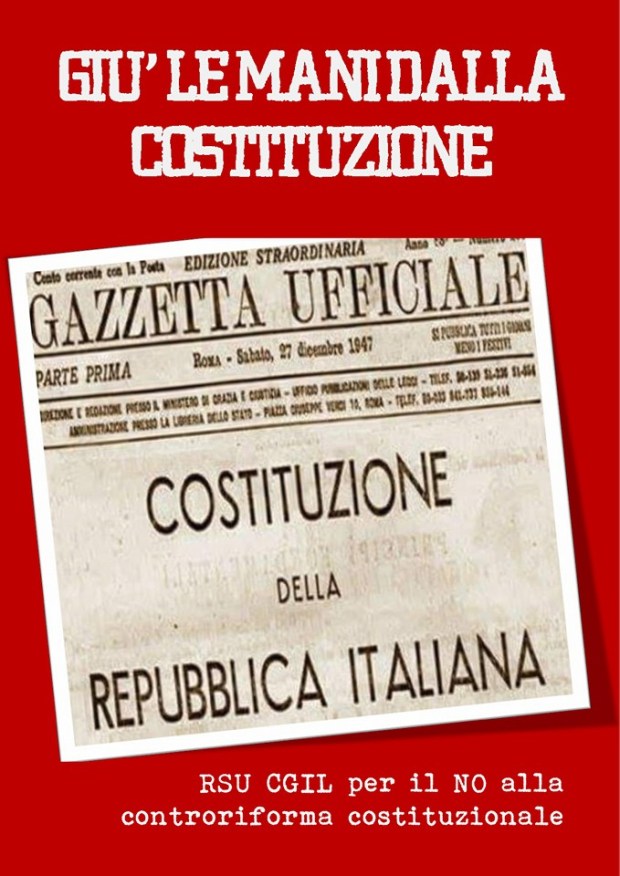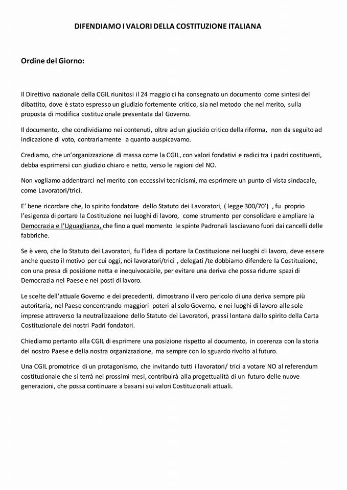 Pubblichiamo questo ordine del giorno, per la difesa della Costituzione, promosso da un gruppo di rsu/rsa/delegati e delegate e finalizzato a far prendere una posizione chiara e netta alla CGIL rispetto al referendum che si terrà in questo autunno.