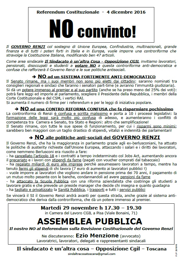 29 novembre. Pisa. NO alla riforma dei padroni!