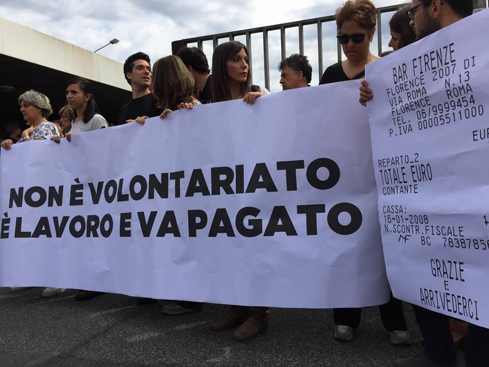 Successivamente, anche per la diminuita capacità di spesa della Biblioteca Nazionale Centrale e di altri Istituti dei beni culturali, l’unica forma di lavoro precario che è stata di fatto offerta a questi “Precari” è stata quella del lavoro volontario, che oltre ad essere penalizzante e irrisoria sul piano economico, li misconosce anche sul piano lavorativo. Non è riconosciuto loro, ovviamente, alcun diritto ed essi devono, per avere un salario irrisorio di € 400 euro, dimostrare di averlo già speso in consumazioni o altre spese necessarie per recarsi al lavoro, lavorando per circa 20 ore settimanali.