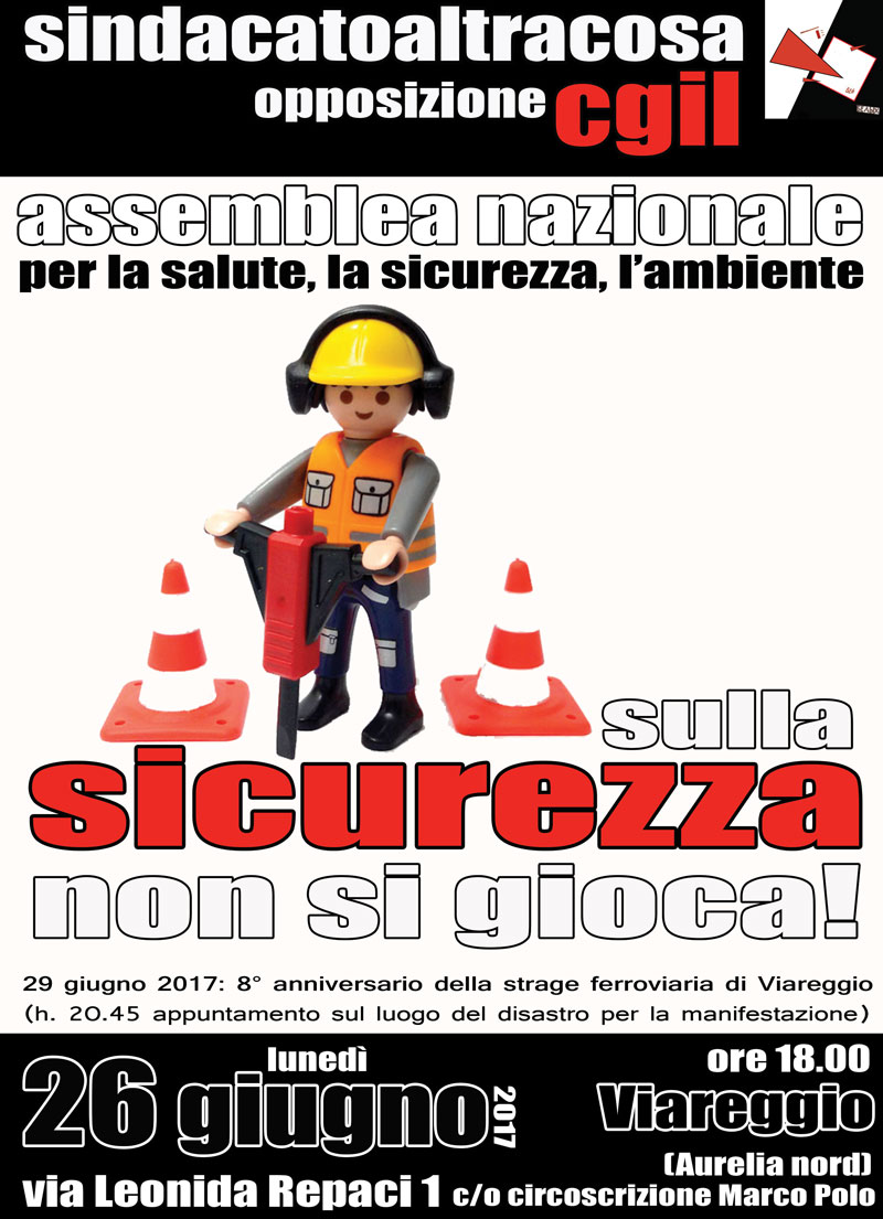 Lunedì 26 giugno a Viareggio, nella settimana dell’anniversario della strage, si terrà l’assemblea nazionale dei delegat@ e militanti del sindacato è un’altra cosa per la salute, la sicurezza e l’ambiente.