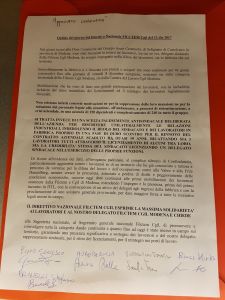 IL DIRETTIVO NAZIONALE FILCTEM CGIL ESPRIME LA MASSIMA SOLIDARIETA’ AI LAVORATORI E AL NOSTRO DELEGATO FILCTEM CGIL MODENA E CHIEDE