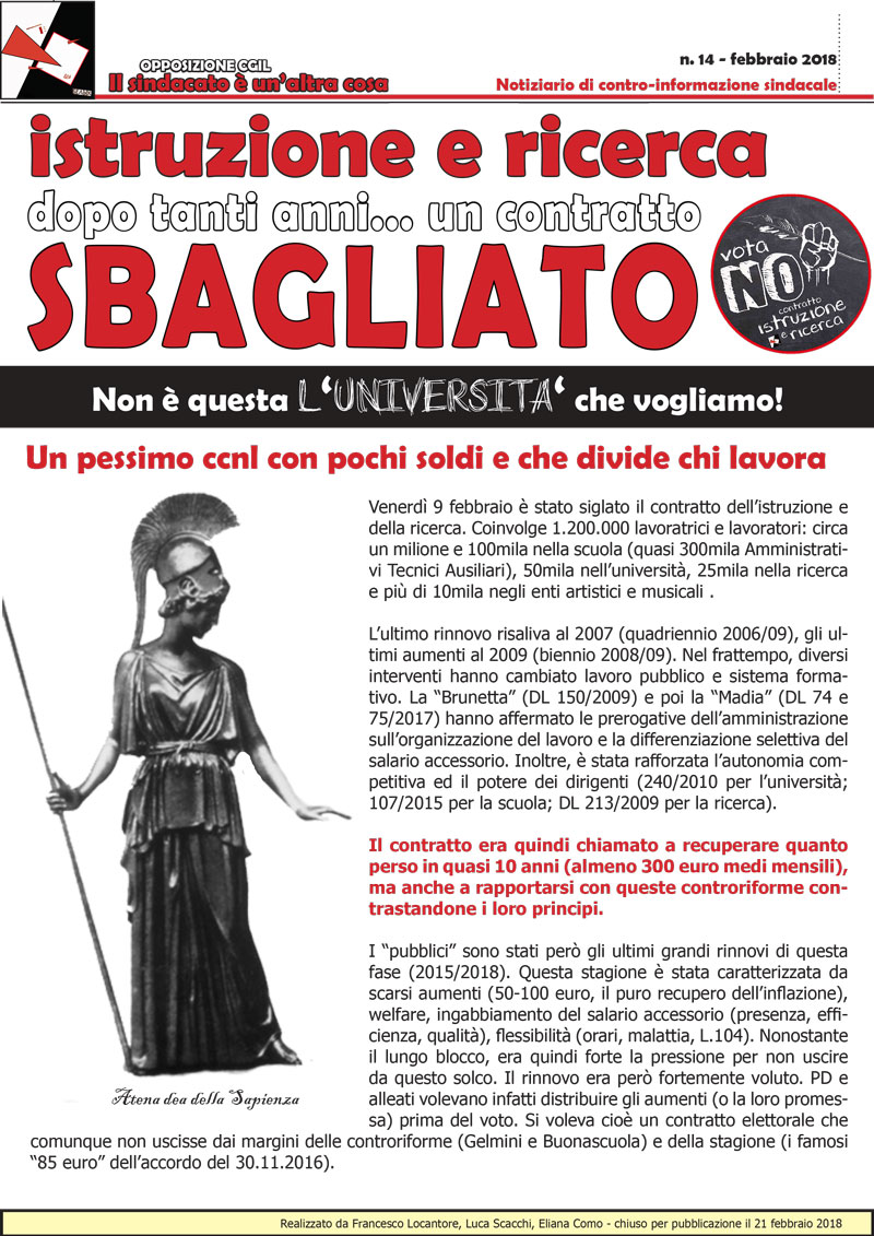 n.14 - febbraio 2018. Un pessimo ccnl con pochi soldi e che divide chi lavora