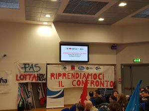 Nella stessa giornata, contestualmente all’inizio della mobilitazione h 11.00, era programmato a Torino l’incontro Azienda-Sindacati per la prosecuzione della trattativa sul rinnovo dell’Accordo disdettato per Pronto Assistance Servizi. Alle 20.00 del giorno prima l’azienda ha informato con una mail le Rappresentanze Sindacali che data l’iniziativa di mobilitazione non ci sarebbero stati più i presupposti per lo svolgimento dell’incontro. I Sindacati hanno risposto che, non intendendo sottrarsi al confronto, si sarebbero comunque presentati al tavolo per proseguire la trattativa e così hanno fatto. La delegazione aziendale non si è presentata all’incontro.
