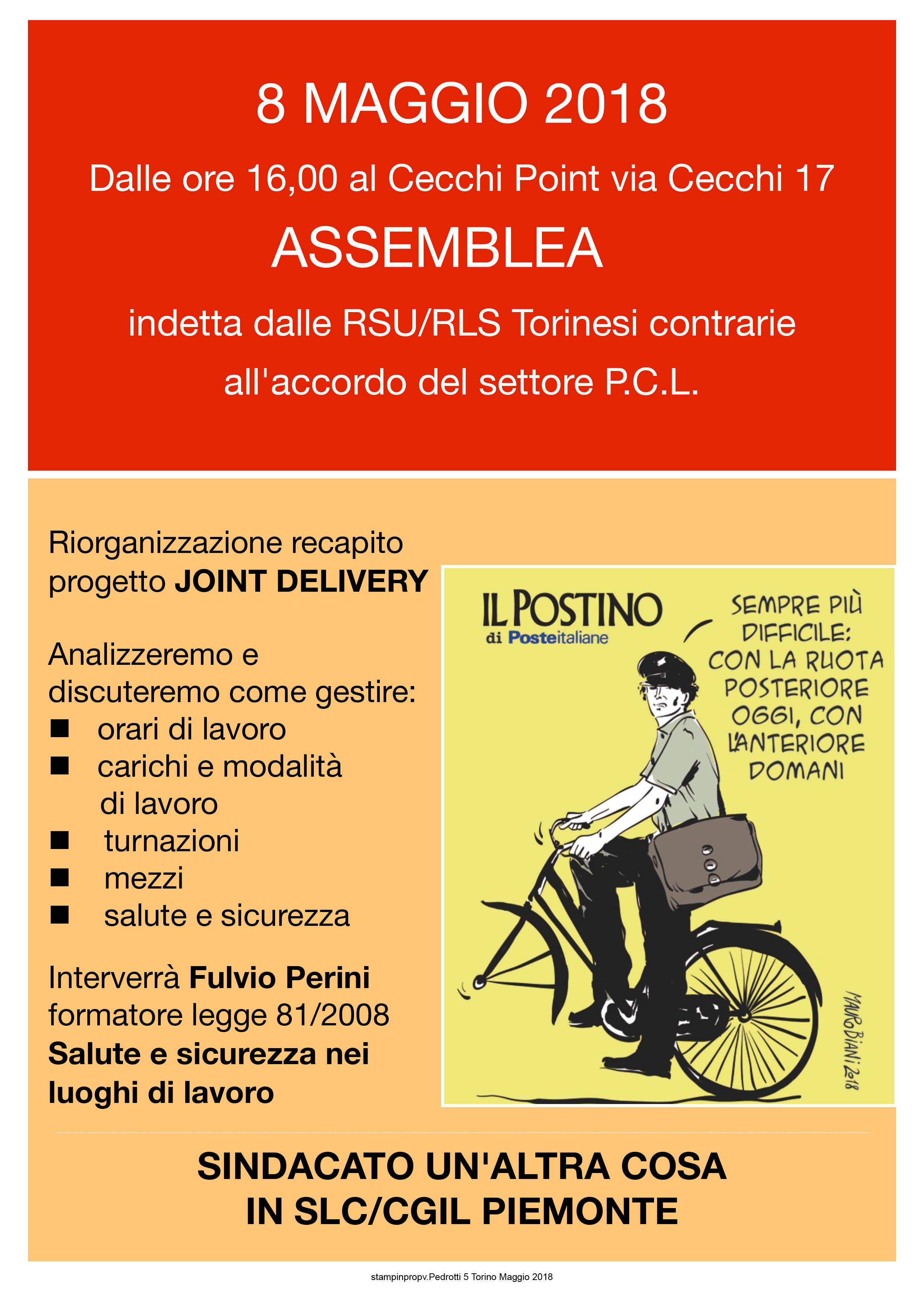 8 maggio. Torino. Assemblea Rsu/Rls Poste contro accordo P.C.L.