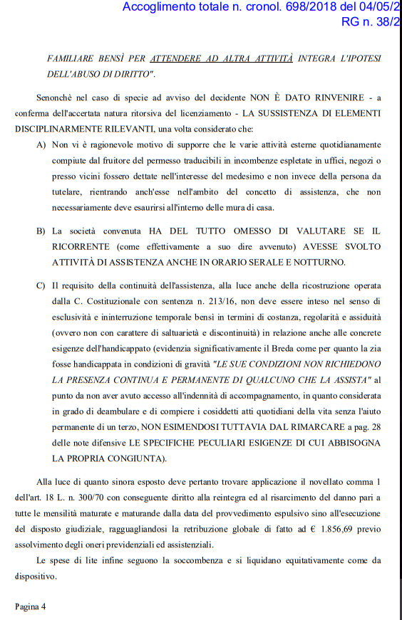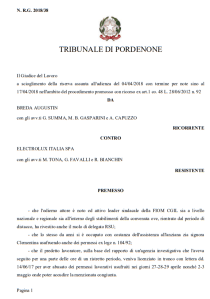 E’ con vera gioia e grande soddisfazione che accogliamo la notizia della sentenza di reintegro del compagno Augustin Breda, licenziato ingiustamente a luglio dell’anno scorso dalla Electrolux di Susegana. La sua è una vittoria per tutte e tutti. Una bella sentenza, che riconosce il licenziamento ritorsivo e fa finalmente giustizia. Invitiamo a leggerla, pur nel rammarico che essa non restituisce l’art.18 in tutti gli altri casi in cui, a causa della riforma Fornero, la reintegra non è più ammessa.