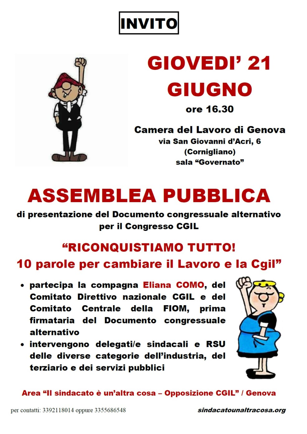 21 giugno. Genova: presentazione documento “Riconquistiamo tutto”.