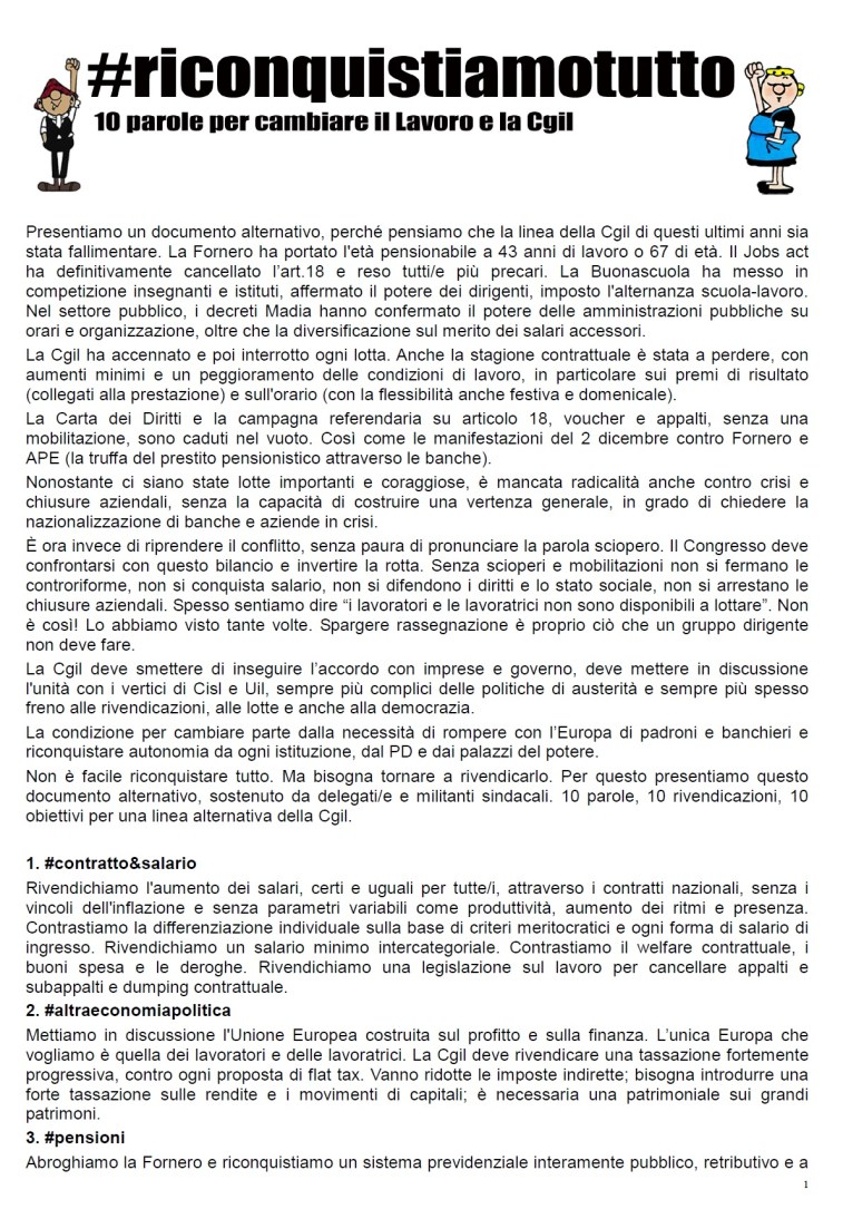 Riconquistiamotutto: la sintesi del documento congressuale.
