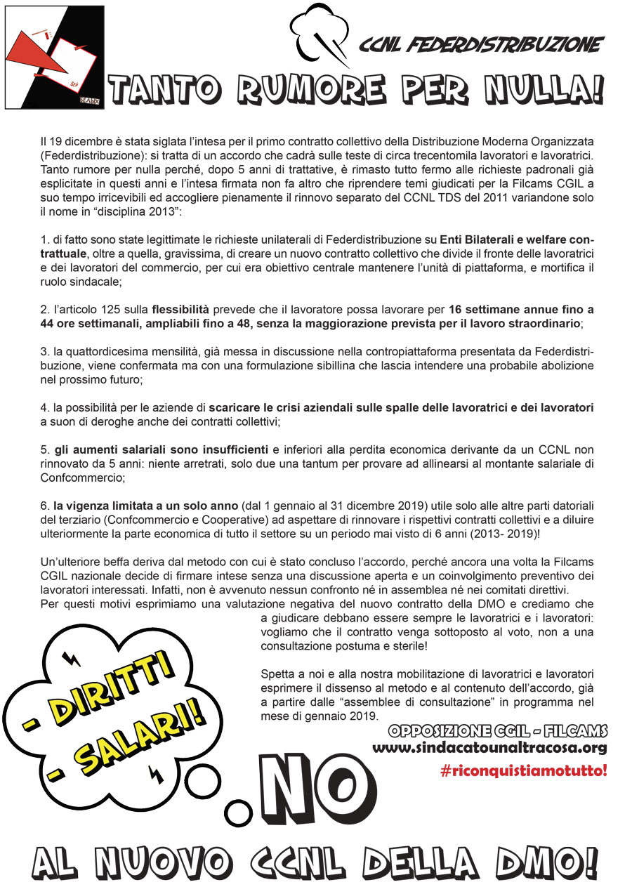 Per questi motivi esprimiamo una valutazione negativa del nuovo contratto della DMO e crediamo che a giudicare debbano essere sempre le lavoratrici e i lavoratori: vogliamo che il contratto venga sottoposto al voto, non a una consultazione postuma e sterile!