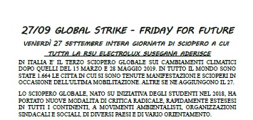 Global Climate Strike: volantino e articoli Electrolux. Un articolo ed il volantino della RSU dell'Electrolux di Susegana sullo sciopero del 27 settembre Pubblicati su 25 settembre 2019 da lucascacchi in luoghi di lavoro, z_carosello // 0 Commenti Qui il testo del volantino in pdf. Condividi: Fai clic per condividere su X (Si apre in una nuova finestra) X Fai clic per condividere su Facebook (Si apre in una nuova finestra) Facebook Fai clic qui per stampare (Si apre in una nuova finestra) Stampa Fai clic per inviare un link a un amico via e-mail (Si apre in una nuova finestra) E-mail Fai clic per condividere su WhatsApp (Si apre in una nuova finestra) WhatsApp Fai clic per condividere su Telegram (Si apre in una nuova finestra) Telegram Mi piace Caricamento... Correlati 27 settembre 2019electroluxglobal climate strikesusegana