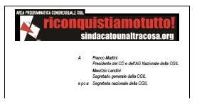 Nella giornata di ieri, abbiamo trasmesso formalmente questa lettera al Presidente del Direttivo e dell’AG della CGIL ed al Segretario generale, affinché al più presto possibile sia finalmente riunito il Direttivo o l’AG della CGIL, e quindi il massimo organo dirigente dell’organizzazione possa discutere e decidere gli aggiornamenti sulla piattaforma ed il confronto con il governo, oltre che valutare l’opportunità (per noi assolutamente necessaria) di assumere finalmente una posizione sulla recente risoluzione del parlamento UE.