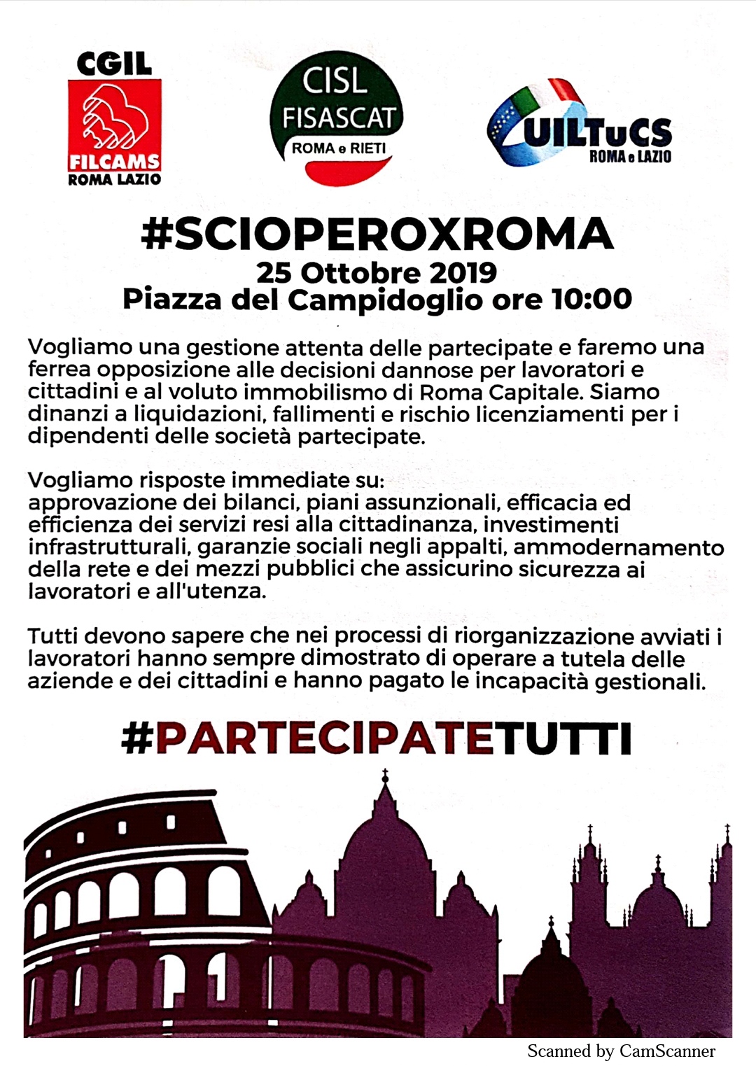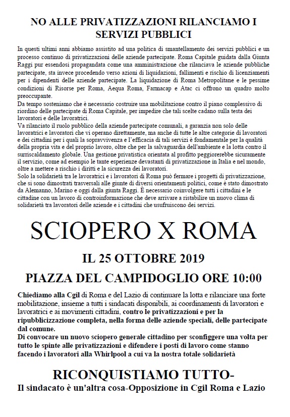 Roma 25 ottobre: sciopero generale servizi pubblici Il volantino di RT! Roma e Lazio Pubblicati su 23 ottobre 2019 da lucascacchi in luoghi di lavoro, z_carosello // 0 Commenti Qui il volantino in pdf. Condividi: Condividi su X (Si apre in una nuova finestra) X Condividi su Facebook (Si apre in una nuova finestra) Facebook Stampa (Si apre in una nuova finestra) Stampa Invia un link a un amico via e-mail (Si apre in una nuova finestra) E-mail Condividi su WhatsApp (Si apre in una nuova finestra) WhatsApp Condividi su Telegram (Si apre in una nuova finestra) Telegram Mi piace Caricamento... Correlati 25 ottobreRoma e Lazioscioperoservizi pubblici