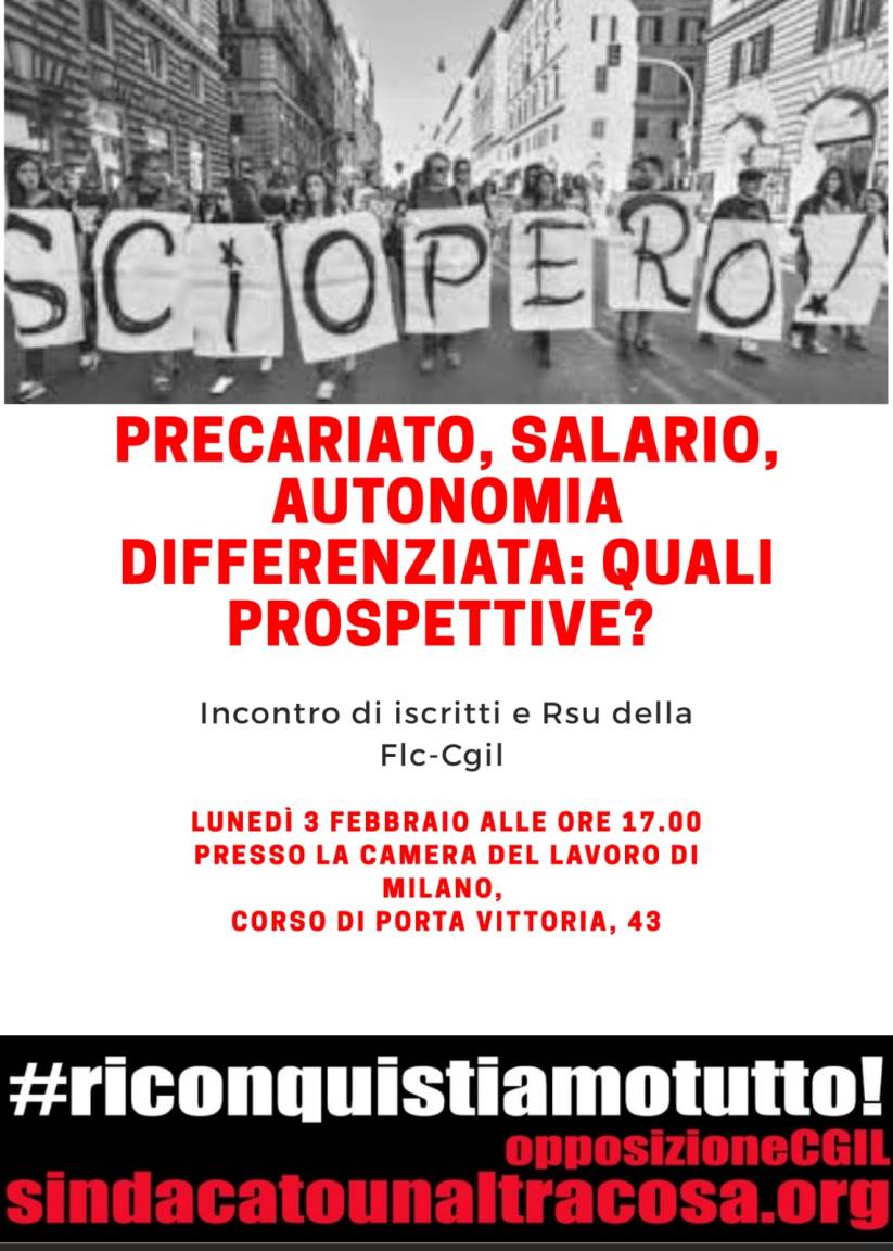 Milano, 3 febbraio: incontro iscritti e rsu FLC.