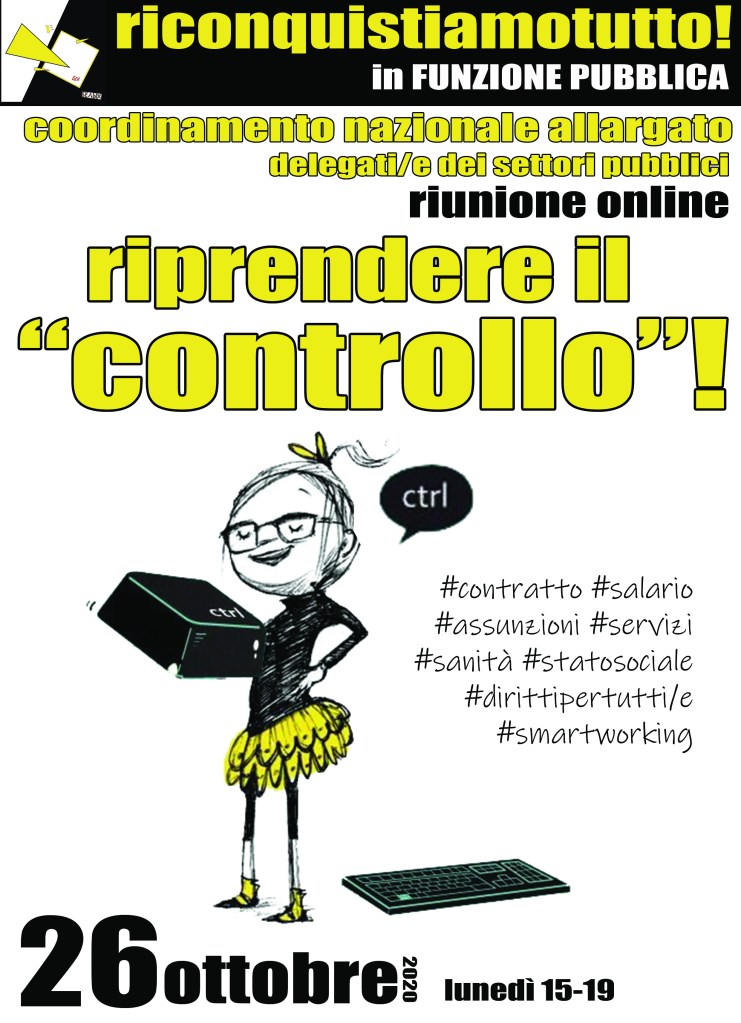 Lunedì 26 ottobre, in modalità online, coordinamento allargato dei compagni e delle compagne di #RiconquistiamoTutto nella FP Cgil.