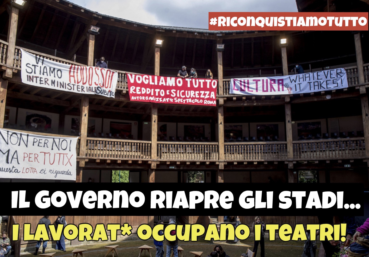 Il 14 aprile a Roma la Rete Lavorat° dello Spettacolo e della Cultura ha occupato il Globe Theatre. Il nostro sostegno alla mobilitazione è totale, solo attraverso mobilitazioni ed azioni come questa si ottengono risultati politici importanti. Altrimenti, come sta accadendo, i teatri restano chiusi, mentre irresponsabilmente riaprono gli stadi.