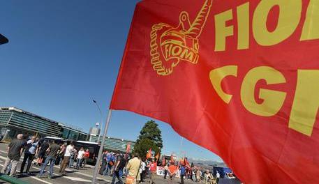 Manifestazione USB FIOM CGIL davanti allo stabilimento Maserati di Grugliasco durante l'assemblea annuale di Confindustria, Torino,30 Giugno 2014 ANSA/ ALESSANDRO DI MARCO