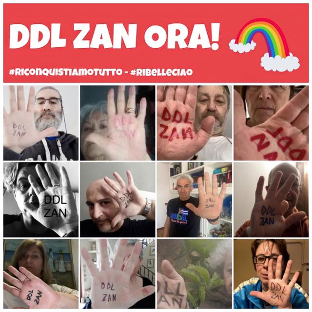 Insomma, ridicoli. La più bella risposta a questo atteggiamento, l’hanno data i compagni portuali del CALP di Napoli: quando pubblicavamo le foto con scritto sulla mano DDL ZAN ORA mi hanno mandato quella del loro guanto da lavoro, sudicio di olio fatica e fabbrica. Su quel guanto c’era scritto: DDL ZAN. ORA!