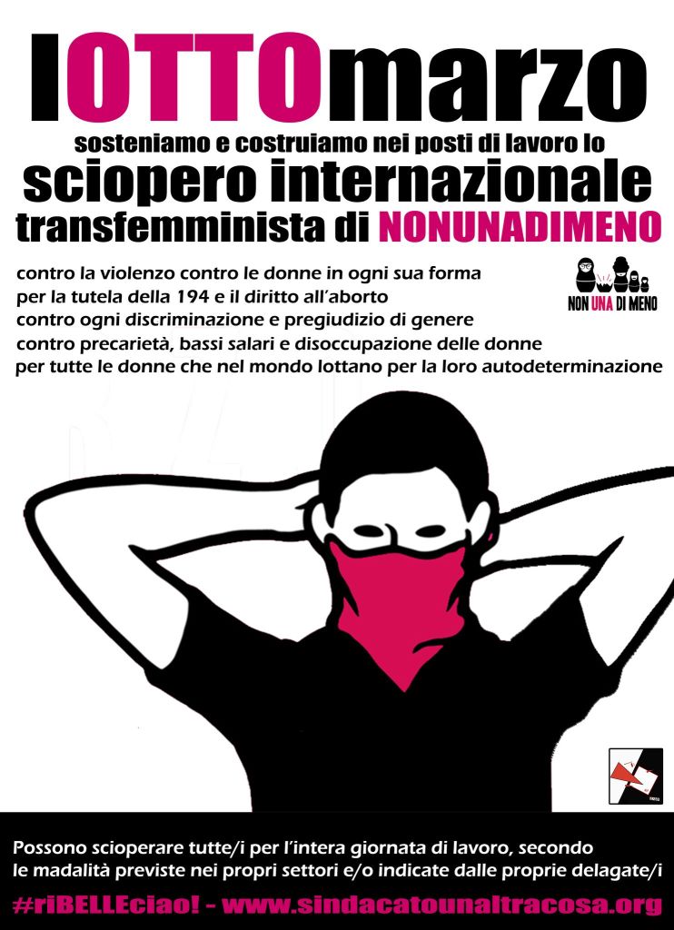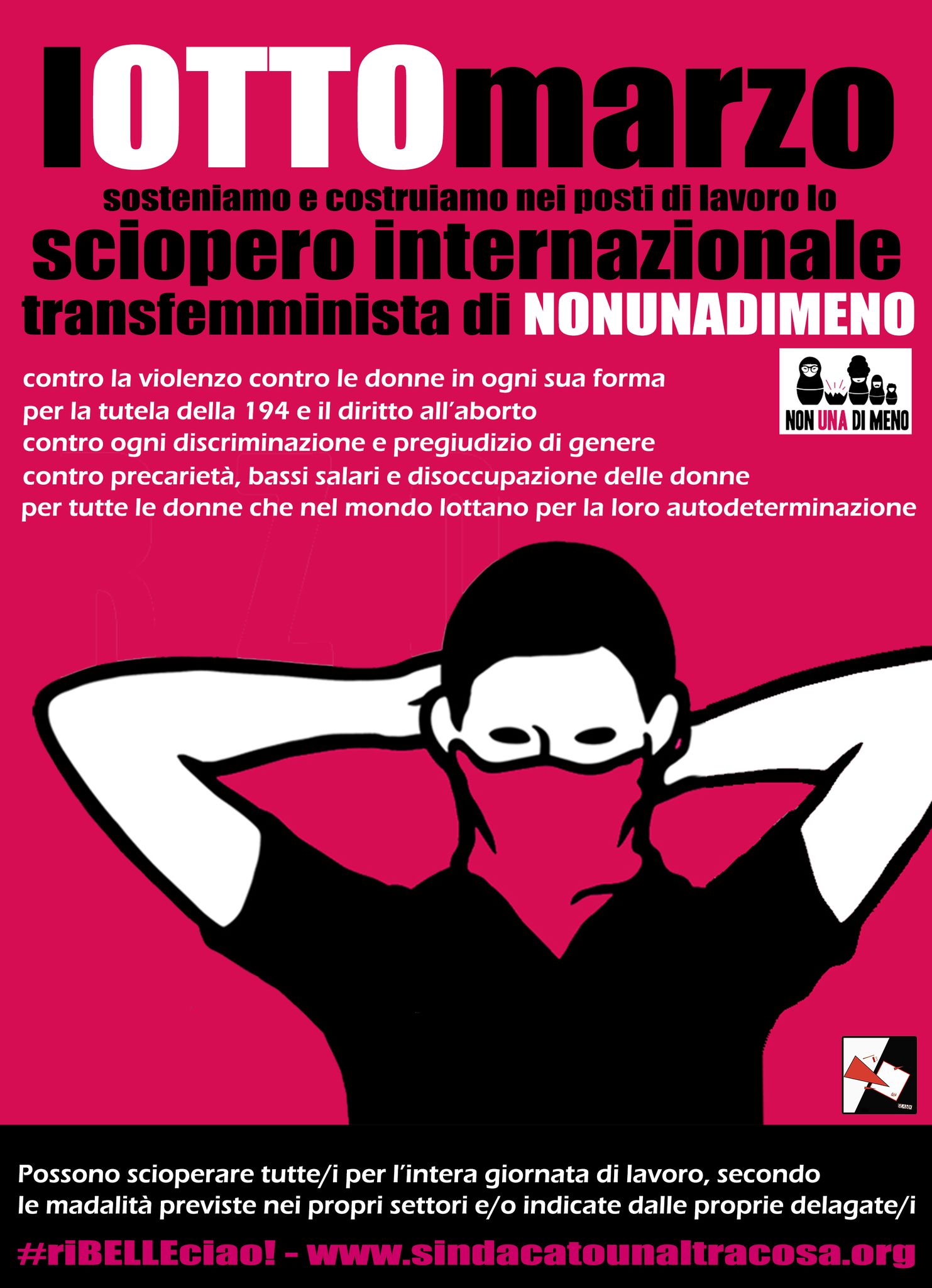 Sosteniamo e costruiamo nei luoghi di lavoro, ovunque ci siano le condizioni, lo sciopero internazionale TRANSFEMMINISTA del movimento NONUNADIMENO. Dopo i volantini, l’appello e le ragioni dello sciopero dal sito nonunadimeno.wordpress.com